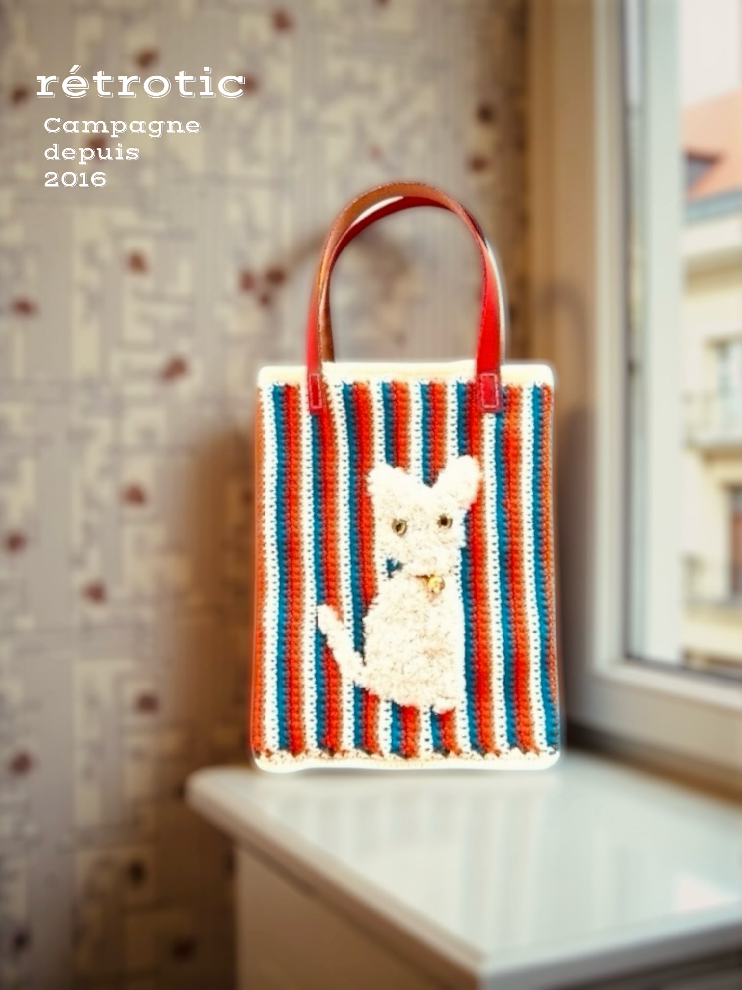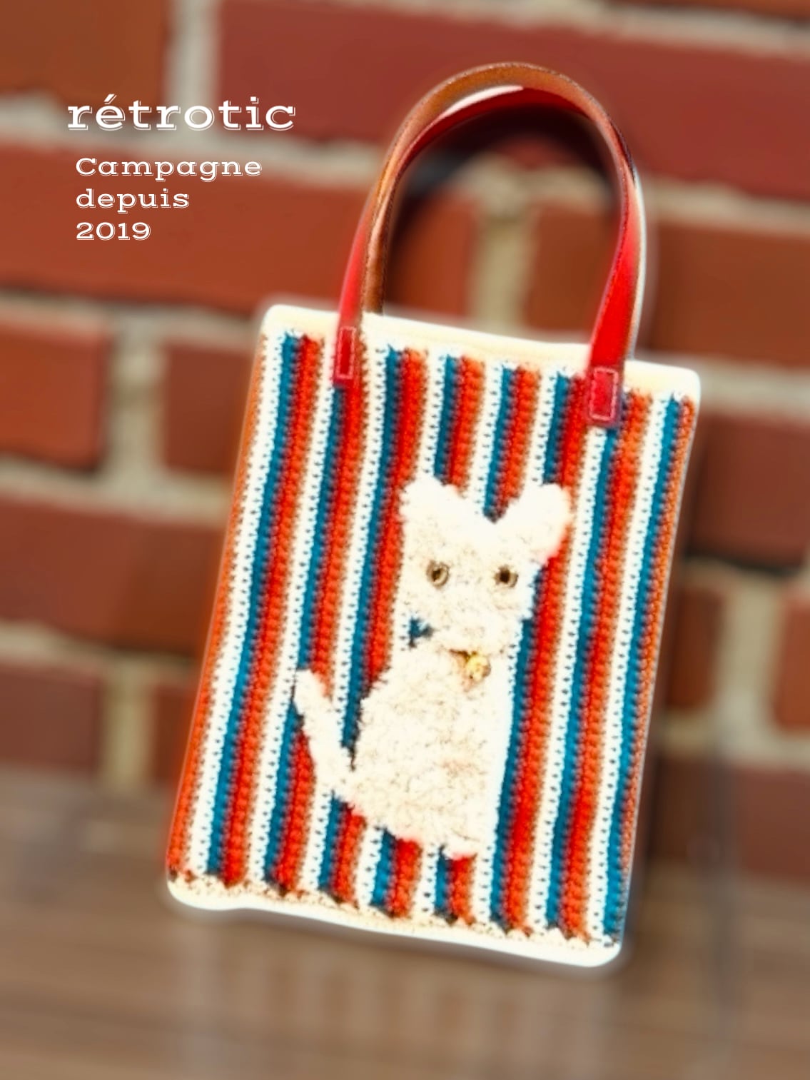 **猫の手編みの手提げ**