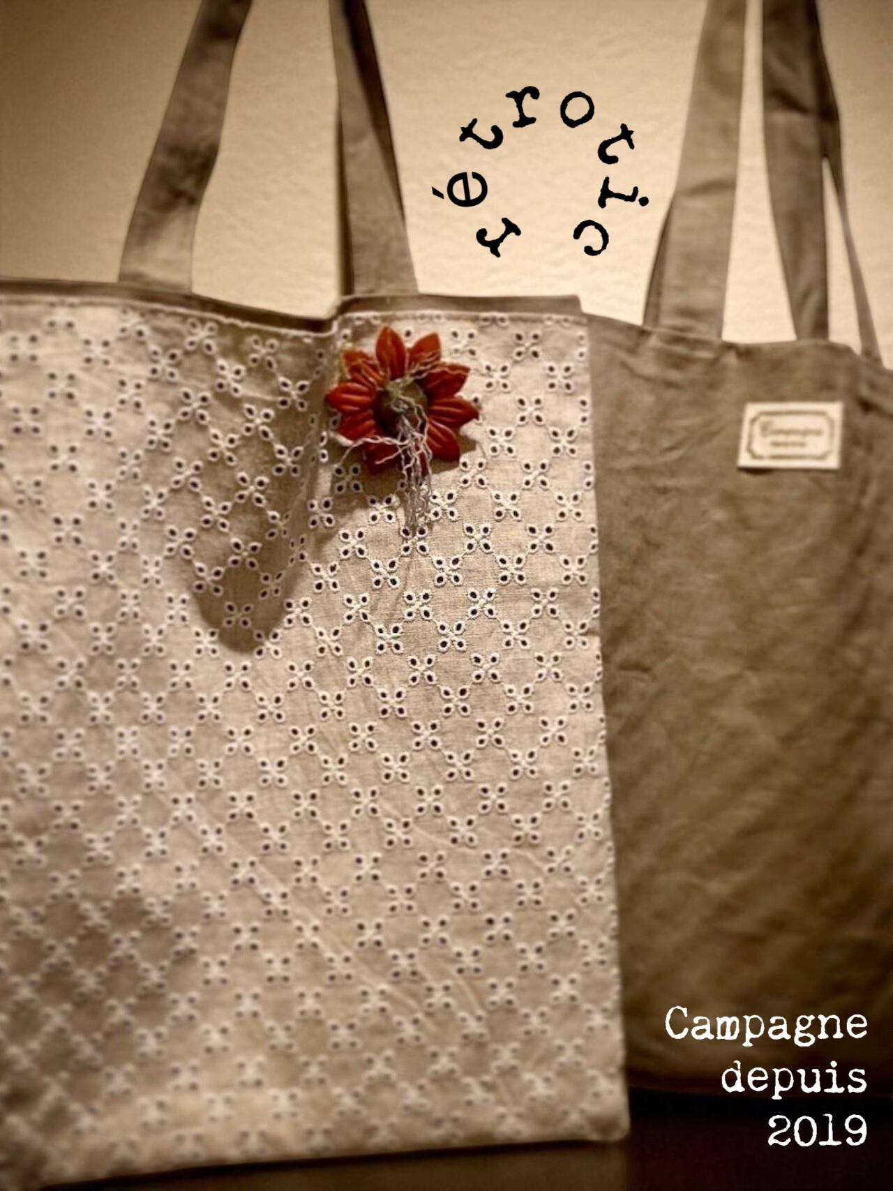 麻レースの生地を2重に縫い合わせて